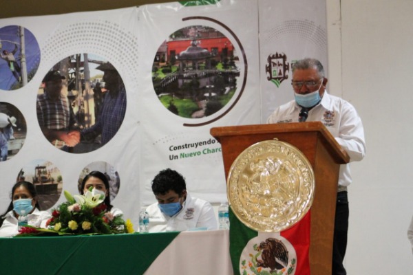 En este acto el presidente municipal, Manuel López Lara, entregó formalmente ante Cabildo y Gobierno del Estado su informe anual correspondiente al 2020, en el cual plasmó el apoyo que su Ayuntamiento ha entregado a los ciudadanos, tanto en la Cabecera municipal como en las comunidades, además de las obras que se han realizado como pavimentaciones, rehabilitaciones, apoyo en drenajes, alumbrado público, agua potable, vivienda, apoyos alimentarios, entre otras acciones que se han ido implementado, destacó el edil.