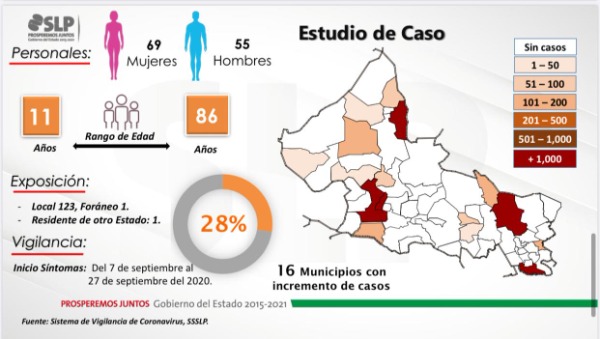 El tipo de exposición se determinó como 123 locales y un foráneo; mismos que habrían iniciado síntomas durante el periodo del 30 de julio al 30 de septiembre.