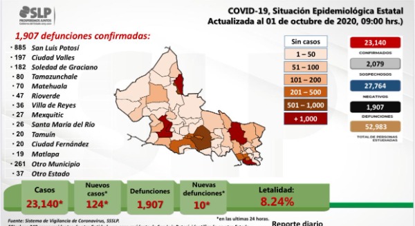 Durante la rueda de prensa virtual de este día, autoridades de los Servicios de Salud del Estado, informaron que la cifra de casos positivos de Covid-19 se incrementó a 23 mil 140 tras detectar 124 nuevos pacientes; en tanto que, el número de defunciones asciende ya a mil 907