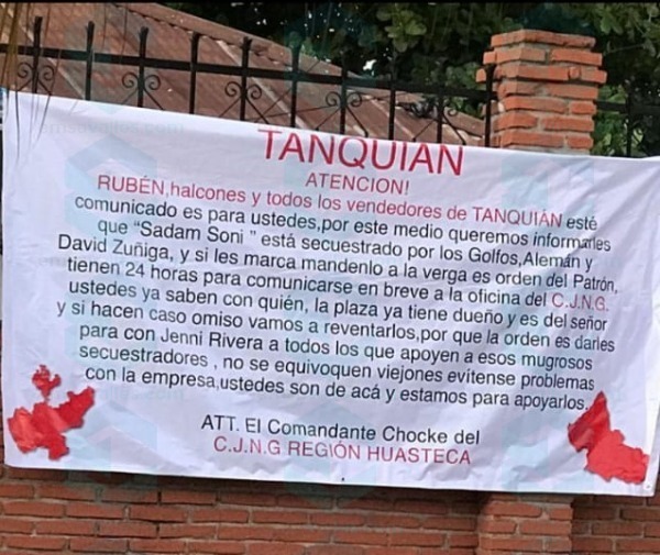 En el mensaje, se le señala a un miembro de dicha familia, de participar en actos de extorsión, venta de autos robados, secuestros, robo de ganado y venta de droga.