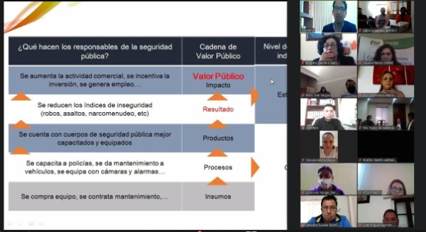 Mencionó los elementos claves a considerar al momento de implementar una evaluación del desempeño, como: el resultado y el impacto de la gestión gubernamental, el valor público, la Gestión para Resultados (PbR – SED), además de la Metodología del Marco Lógico; conceptos que fueron revisados durante el foro, donde participaron las áreas de planeación de los 58 municipios; recordó que el municipio es el conducto donde se da la relación directa con el ciudadano.