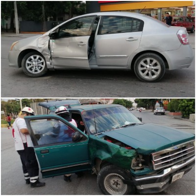 Esta mañana se registró un choque en el cruce de la avenida Pedro Antonio Santos y la calle Fernando Domínguez en la colonia Cuauhtémoc.