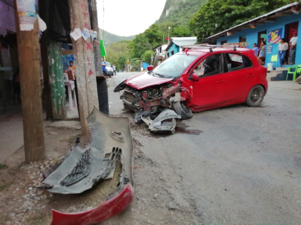 Esta tarde un vehículo marca Nissan March color rojo, chocó de frente contra un poste de concreto, en el kilómetro 20 aproximadamente de la carretera estatal Valles-Naranjo, a la altura del ejido Estación Micos.