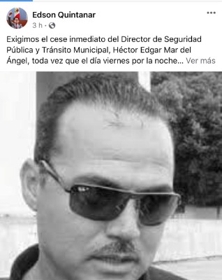 El diputado local, Edson Quintanar Sanchéz, exigió mediante sus redes sociales el cese inmediato del titular de la Dirección de Seguridad Pública y Tránsito Municipal de Ciudad Valles, Héctor Edgar Mar del Ángel, al señalar que este viernes privó de su libertad a una joven sin justificación alguna, limitándose a responder de manera soberbia que "a él nadie lo contradecía".