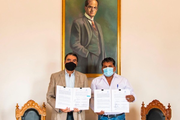 En las oficinas de Rectoría del Edificio Central, el doctor Alejandro Javier Zermeño Guerra, rector de la Universidad Autónoma de San Luis Potosí, y el presidente municipal de Tanlajás, Raúl Rivera Olvera, firmaron el convenio de colaboración con el que se buscará impulsar el desarrollo social en esa zona del estado.