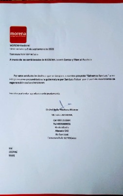 A través de redes sociales, se difunde un oficio, donde presuntamente, un ciudadano común, le pide a las autoridades del partido movimiento regeneración nacional (MORENA) en SLP, que lo integren en sus proyecto, para así ser partícipe en las próximas elecciones del 2021.