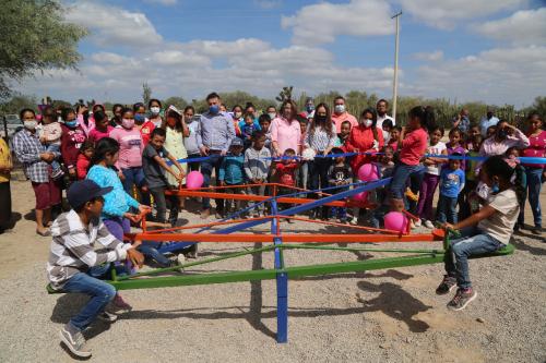 En esta ocasión realizó una productiva gira de trabajo en Municipios del Altiplano. Inició las actividades en la localidad San José de Enramada de Moctezuma, en donde acompañada por el Alcalde Mario Díaz Hernández y la Presidenta del DIF Municipal, Imelda García Rojas, entregó el proyecto de espacio recreativo del programa Salud y Bienestar Comunitario, el cual fue elegido por la propia comunidad. Asimismo, en esa comunidad las familias recibieron apoyos alimentarios, que fueron donados por la empresa TC-Energy.