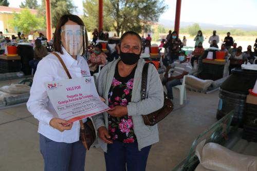 La Presidenta de la Junta Directiva del DIF Estatal, estuvo en el altiplano para entregar granjas avícolas, paquetes para bebé, apoyos alimentarios, ayudas técnicas y bicicletas