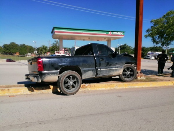 Un joven que conducía una camioneta marca Chevrolet color negro, perdió el control del volante y se trepó al camellón, chocando contra un poste de acero que sostiene las cámaras de video vigilancia del Ayuntamiento.