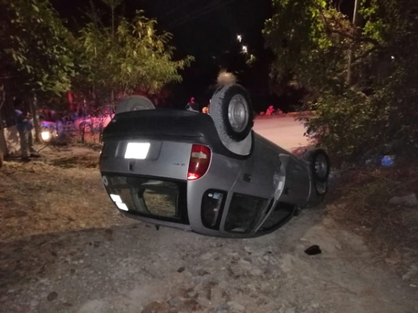 Anoche en la calle Francia y Pedregal de la colonia Lázaro Cárdenas, se volcó un automóvil Chevrolet Chevy color gris, supuestamente a causa de una falla mecánica.