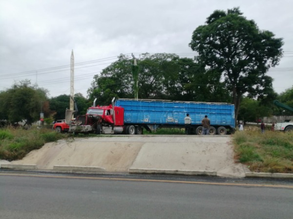 Se informó que un trailer no identificado, chocó contra otro marca Famsa color rojo, con redilas, el cual quedó atravesado sobre la carretera.