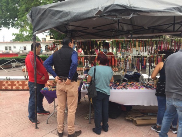 El grupo de artesanos que esta mañana llegó a la plaza principal, sí se instalará en el lugar a vender sus artículos y productos, solo deberán apegarse a los protocoles establecidos ante la pandemia del COVID 19 para evitar su propagación.