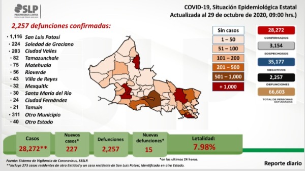 El acumulado total es de 28 mil 272 enfermos desde el inicio de la pandemia de los cuales 2 mil 257 perdieron la vida