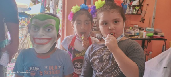 Aurora Said Moctezuma comentó que a ella y a sus amigos les gustan mucho los dulces y cada año se disfrazan de catrinas, brujas, diablitos, catrines y salen a pedir chichiliques para que sus vecinos les den muchas golosinas y compartirlos entre ellos.