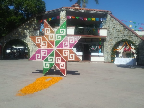 Además la fuente del loro huasteco fue decorada también con flores, veladoras y tres catrinas.