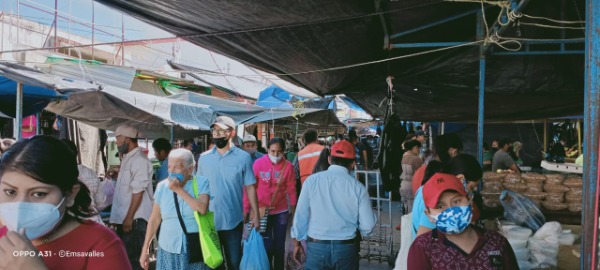Con filtros sanitarios en cada entrada de los tianguis, se encuentra personal de enfermería aplicando gel antibacterial y dotando de cubrebocas a quien no lo lleve, mismos que se ubican donde hay una gran afluencia de vallenses comprando todo para celebrar desde sus domicilios, ya que los panteones y demás, se encuentran cerrados a causa del a pandemia Covid-19.