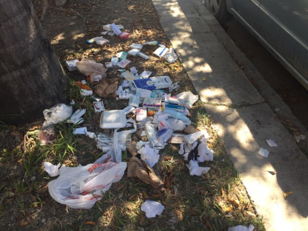 El día de hoy aparecieron desechos de medicamentos tirados sobre el boulevard México Laredo, a la altura de Telmex, lo que fue hecho llegar hasta la redacción por un seguidor de Emsavalles.com.