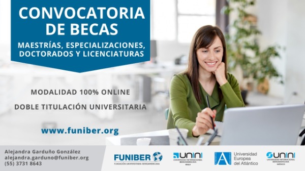 Cabe señalar que las becas son limitadas y dependen de la asignación de las universidades en convenio por lo que el postulante podrá contactar con cualquier sede de FUNIBER o llenar un formulario disponible junto con la convocatoria en el siguiente enlace: https://bit.ly/3lUr1Ds. Para mayores informes se puede contactar a Alejandra Garduño González alejandra.garduno@funiber.org
