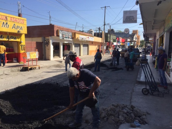 Inician los trabajos de reparación de la calle Niños Héroes de la colonia zona centro que se encontraba muy dañada y era un peligro para los vehículos que circulan por esta arteria, y también para los comerciantes que se ubican en esta calle ya que han pasado varias ocasiones que les han pegado a sus puestos porque los carros pasan muy cerca de ellos para evitar caer al enorme hoyanco que ahí se formó.
