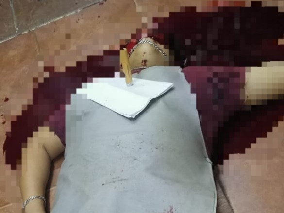 Esta noche, un vendedor de pollos fue asesinado al interior del establecimiento to donde trabajaba, al cual, le enterraron un cuchillo con un presunto mensaje en el pecho.
