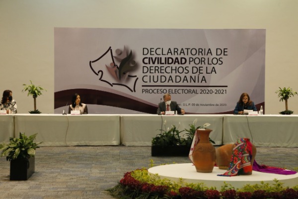 El Consejo Estatal Electoral y de Participación Ciudadana (CEEPAC), los Poderes del Estado de San Luis Potosí, el Tribunal Electoral del Estado, la Fiscalía Especializada en Materia de Delitos Electorales y el Instituto Nacional Electoral (INE), partidos políticos y representantes de la Ciudadanía, signaron el día de hoy la Declaratoria de Civilidad por los Derechos de la Ciudadanía, en el marco del inicio de las precampañas electorales del proceso electoral 2020-2021.