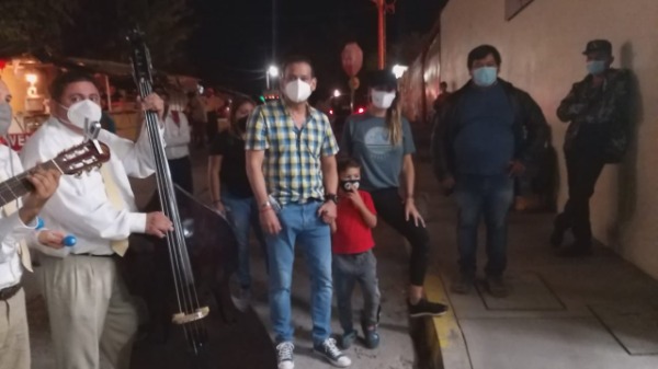 Acompañado por unos músicos, el funcionario repartió cenas a quienes estaban en la explanada de dicho nosocomio y conversó con ellos un poco sobre como han llevado esta crisis de salud con sus familiares