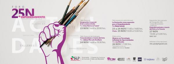 Además, se tienen programado el 23 y 24 de noviembre, el taller "La ilustración como expresión para el empoderamiento", donde María Carlock compartirá desde su experiencia como muralista, el poder que se puede tener al expresarse mediante dibujos. Asimismo, el 25 de noviembre las participantes pintarán colectivamente un pequeño mural donde se mostrarán los resultados del taller.