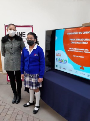 Frida Viridiana Cruz Martínez, legisladora infantil del Distrito 06 Electoral rindió cuentas como parte del 11° Parlamento de Niñas y Niños de México, evento realizado en el mes de octubre de manera virtual debido a la contingencia sanitaria.
