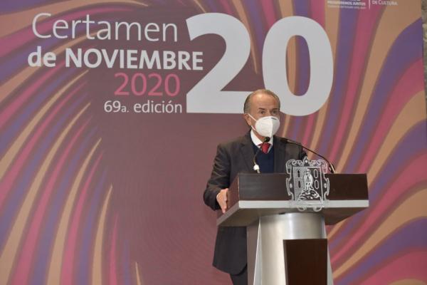 El director general del Centro de las Artes, Eudoro Fonseca Yerena, en representación del Secretario de Cultura, Armando Herrera Silva, detalló que el Certamen 20 de noviembre inició en 1951 como una de las primeras iniciativas de estímulo a la creación y excelencia artísticas en México y, a partir de 2015 con la nueva administración estatal, se reconoció la importancia del apoyo a las creadoras y creadores artísticos, a los investigadores e investigadoras de la historia y la ciencia, elevando este premio de 50 a 75 mil pesos.