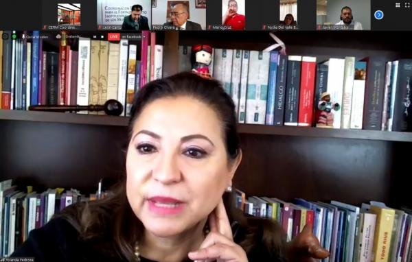 En el foro virtual participaron la Magistrada presidenta del Tribunal Estatal Electoral, Yolanda Pedroza Reyes, el Fiscal especializado en Delitos Electorales, Javier Montalvo Pérez, además de Pedro Olvera Vázquez, analista y catedrático de la UASLP.
