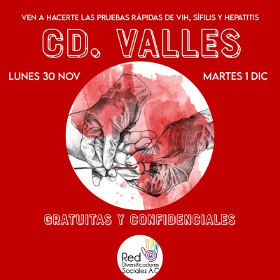 La Asociación Red Diversificadores Sociales, estará la próxima semana realizando pruebas rápidas de VIH, Sífilis y Hepatitis en Ciudad Valles, Tamazunchale, Tancanhuitz y Tanquián así lo refirió, Jesús Eduardo Flores, activista y psicólogo de esta agrupación, quien además, se está desempeñando como aplicador de estas pruebas.