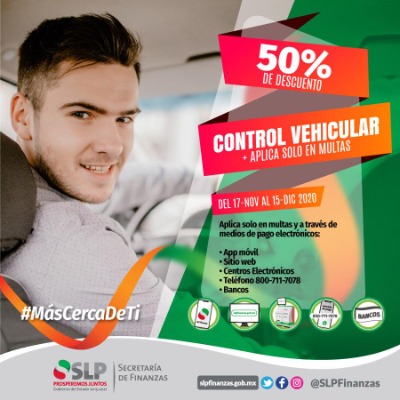 Las y los potosinos podrán acceder a este descuento exclusivamente en pagos realizados a través de medios electrónicos y bancos. En las oficinas recaudadoras, no se aplicará el descuento en multas de control vehicular. Esta medida se adoptó ya que es una prioridad el cuidar la salud de las y los ciudadanos, sin embargo, se brindan opciones para que puedan cumplir con sus obligaciones fiscales.