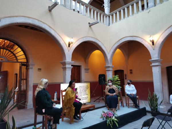 En primer lugar, participó Rosario Hernández, docente jubilada, quien ha formado varias generaciones de adolescentes y jóvenes sanmarienses. Explicó que su entrega como docente la acercó a cargos de la función pública, conociendo de cerca la problemática de la violencia contra las mujeres en el municipio, que la llevó a realizar gestiones para la prevención y erradicación de ésta.