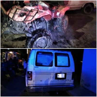 La noche de este domingo en la calle Reforma entre Galeana y bulevar México-Laredo, se registró un choque entre una cuatrimoto roja y una camioneta marca Ford Ecoline color blanco, tipo panel que se encontraba estacionada.