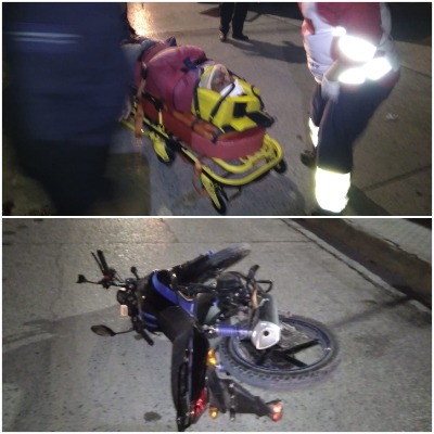 Este hombre conducía una motocicleta marca Italika color negro y azul, sin placas de circulación, y se presume que debido al exceso de velocidad se derrapó y cayó.