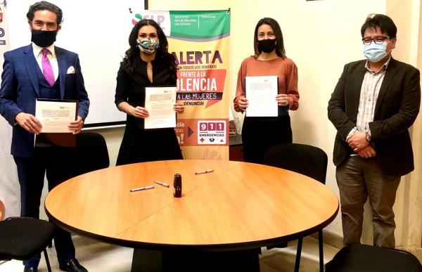 Con el objetivo de brindar capacitación en temas de perspectiva de género y ofrecer asesoría jurídica, la directora general del Instituto de las Mujeres del Estado (IMES), Erika Velázquez Gutiérrez y el presidente de la Barra Mexicana del Colegio de Abogados A.C., Capítulo San Luis Potosí, Carlos Gustavo Peláez Barrera, signaron un convenio de colaboración.