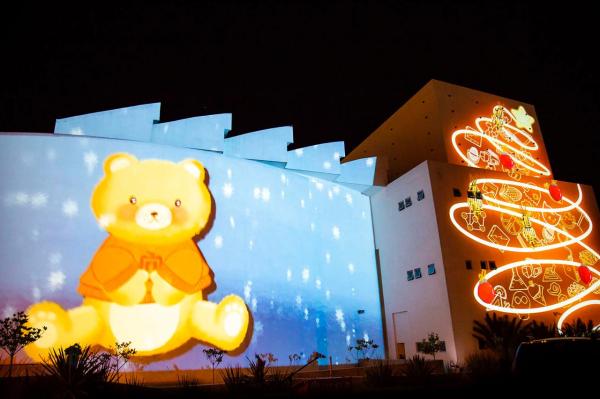 Como parte de la inauguración del Bazar Universitario edición 2020, estudiantes y docentes de diversos planteles encabezados por la Coordinación Académica en Arte (CAArte), lograron exitosamente la proyección del mapping decembrino en el Centro Cultural Universitario Bicentenario (CC200).