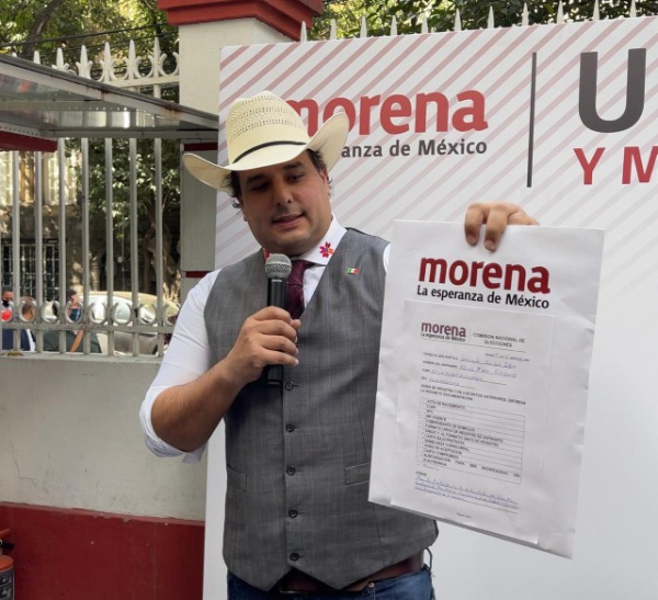 Esper Cárdenas presentó este viernes, su solicitud de registro en el Comité Ejecutivo Nacional de Morena, en la Ciudad de México.