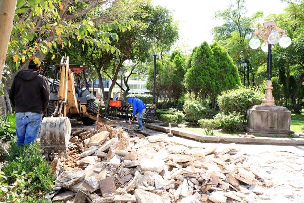 Entre las obras más recientes, están los arreglos que se hacen en el piso del jardín de Tequis, donde ya casi se terminó la colocación del firme de concreto y se empezó a poner el mármol estilo "avejentado", además de la remoción de algunas piezas de cantera.