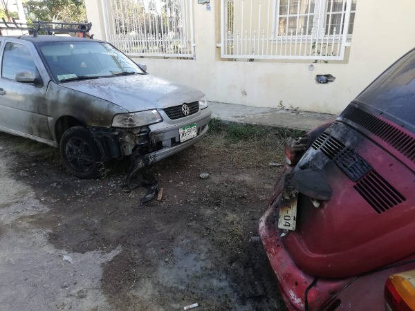 La tarde de este martes en la calle Axtla esquina con Tanculpaya de la colonia Tantocob, se registró un incendio, que dejó daños en un vochito rojo y un Vokswagen Pointer gris.