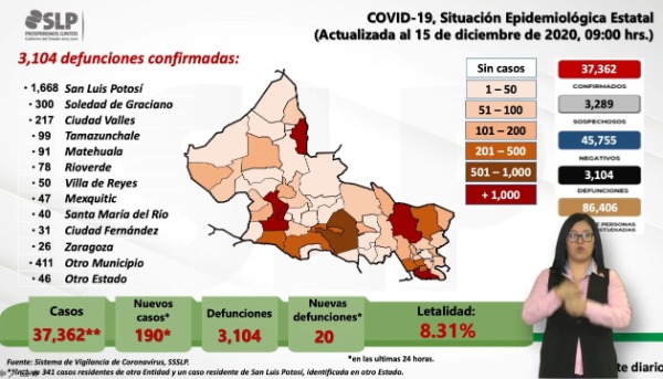 Las cifras en SLP alcanzan los 37 mil 362 pacientes y las 3 mil 104 defunciones