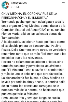 Lo anterior, luego que el funcionario estatal confirmara en redes sociales que ha realizado eventos masivos en sus propiedades, los cuales, infringen las medidas sanitarias implementadas por causa del Covid-19
