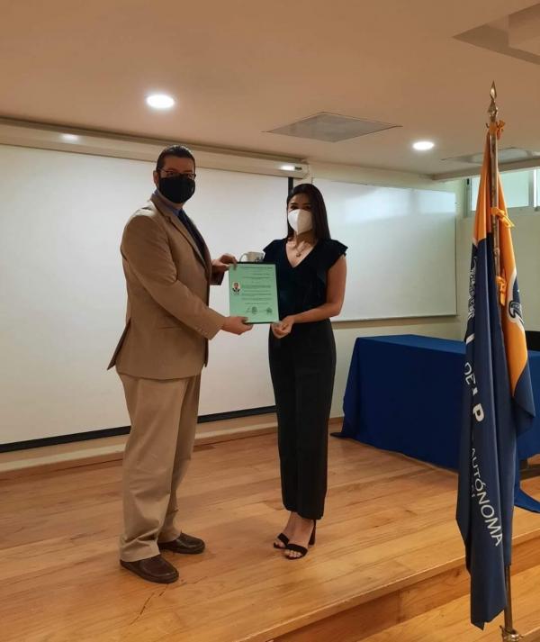 Finalmente, agradeció a su familia, compañeros de aula, catedráticos, y en especial a la Dra. Pilar Suárez Rodríguez, quien fue su tutora y acompañó en este recorrido "gracias a ella logré la confianza y el aprendizaje en este andar".