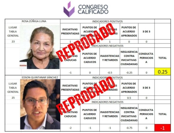 El detestable trabajo legislativo de los diputados vallenses, Rosa Zúñiga Luna y Edson Quintanar, se desglosan de forma individual de la siguiente forma: Rosa obtuvo una calificación de .25 y Edson -1.