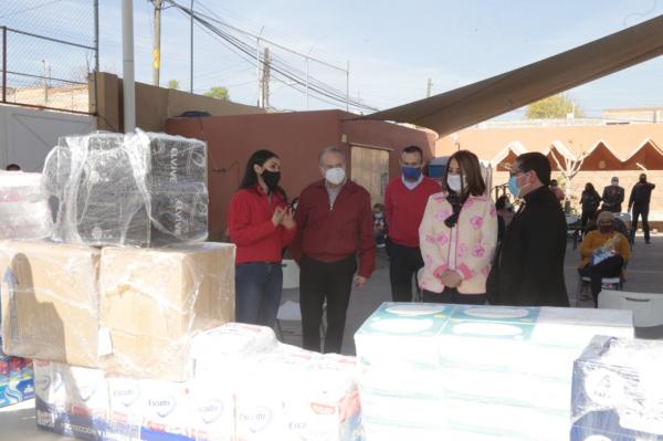 En su intervención, la directora del Instituto de las Mujeres (IMES), Érika Velázquez Gutiérrez, dio a conocer que a través de la gestión ante el Instituto Nacional de las Mujeres, se obtuvieron recursos para adquirir artículos de primera necesidad, medicamentos, kits de higiene personal y de limpieza, mismos que se entregan en donativo a la Casa de la Caridad Hogar del Migrante.