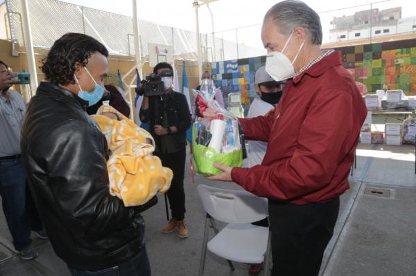 En el marco del Día Internacional del Migrante, el Gobernador del Estado, Juan Manuel Carreras López y la Presidenta de la Junta Directiva del Sistema Estatal DIF, Lorena Valle Rodríguez, entregaron apoyos humanitarios a personas en situación de movilidad, principalmente a mujeres y a sus hijas e hijos, quienes reciben atención en la Casa de la Caridad Hogar del Migrante.