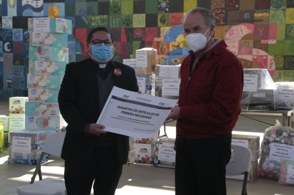 "Esta casa es una gran obra humanitaria, donde cada año miles de personas, ya sea mexicanos o centroamericanos encuentran una mano amiga dispuesta apoyarles en esta travesía. Por eso estamos aquí, para entregar estos insumos y apoyos alimentarios que les serán de mucha utilidad en el camino", afirmó Carreras López.