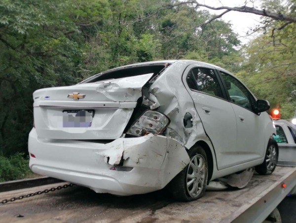 Afortunadamente los ocupantes no sufrieron lesiones, y al lugar llegaron oficiales de la Guardia Nacional División Carreteras, quienes tuvieron que pedir apoyo de una grúa.