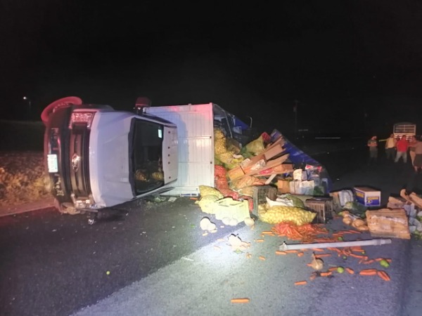 Una camioneta de doble rodada marca Ford color blanco, que provenía de la capital del Estado y se dirigía a la bodega de Casa Lara, se salió del camino y volcó.