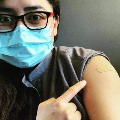 "Agradecida y esperanzada. ¡Ojalá pronto todos estemos cubiertos y podamos abrazarnos otra vez, Mientras tanto, a seguir cuidándonos. P.D. Los mantendré al tanto, de efectos secundarios, para que se animen cuando sea su tiempo de vacunación."
